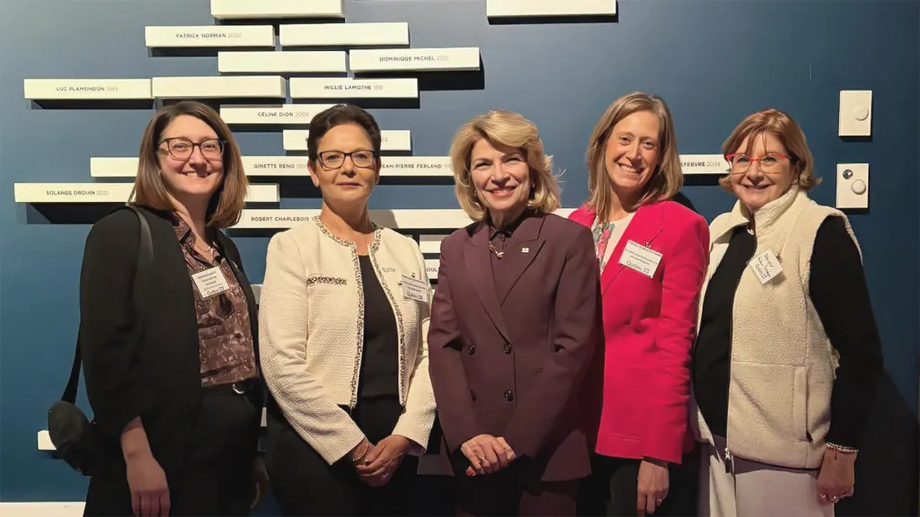 Photo (de gauche à droite) Isabelle Laurin, directrice générale de l’Association canadienne-française de l’Alberta (ACFA), PadmineeChundunsing, administratrice du Centre, Marianna Simeone, Cheffe de poste, Bureau du Québec à Toronto, Flavie-Isabelle Hade, directrice générale adjointe et directrice de la programmation du Centre, Françoise Sigur-Cloutier, vice-présidente du Centre d’accueil pour nouveaux arrivants francophones (CANAF) à Calgary et administratrice du La Fondation franco-albertaine et du Réseau dialogue.