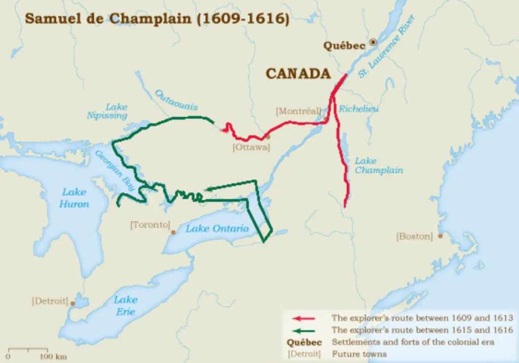 Samuel de Champlain est l’instigateur de l’alliance guerrière et commerciale entre les Français, Hurons, Algonquins et leurs nombreux alliés. Ils feront bloc face aux Iroquois, aux Hollandais et aux Anglais. Cette alliance est fondamentale pour la survie de la Nouvelle-France, et perdurera jusqu’à la conquête, voire au-delà.