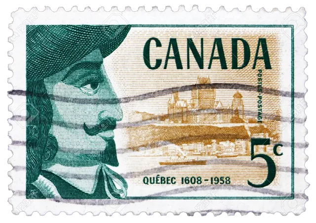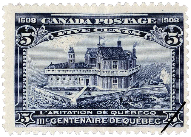 Pour honorer sa mémoire, un timbre commémoratif, représentant l'Habitation de Québec, 1908